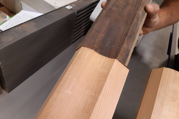 Western Red Cedar gootlijsten kopiëren voor een rijksmonumentaleb neogotische kapel. Bijna gereed voor montage, nog even schulpen en schuren!